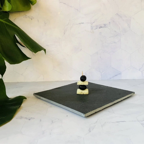 Łupek kamienny prezentacyjny kwadrat Deska kamienna do serwowania potraw, taca, podstawka grafit 30x30 cm.